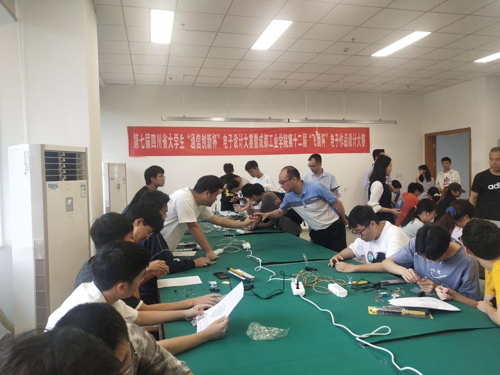 5月19日,第七届吉林省“通信创新杯”电子作品设计大赛暨吉林职工大学第十二届“飞鹰杯”电子作品设计大赛——基础装配组比赛在宜宾校区藻青楼2C304、2C312、2C313、2C412、2C413进行。本次大赛共分为基础装配组、调试测试组、网络设计与组建组、设计组四个组别赛事。基础装配组比赛吸引了来自网络与通信工程学院,计算机工程学院,材料与环境工程学院,汽车与交通学院,电子工程学院等117支队伍,351余名学生参加比赛。宜宾校区、郫都校区、网络与通信工程学院相关负责人和部分骨干教师对大赛进行指导,杨新民、李鹏程、邱世卉、刘虹、雷婷、王丹老师担任评委。
