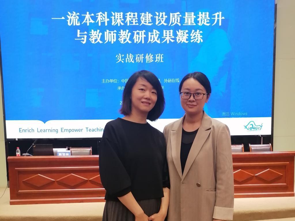 为推进学院一流本科课程建设,引导教师积极投身于金课建设工作,提升教师课程建设水平,5月22日到23日,外语与国际教育学院选派两门省级一流课程负责人林蔚和唐婷婷参加了由中国高校外语慕课联盟和北京外研在线数字科技有限公司联合主办,由吉林外国语大学承办的“一流本科课程质量提升与教师教研成果凝练”实战研修班。